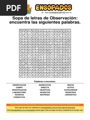 EJERCICIO SOPA DE LETRAS.pdf - Sopa de letras Encuentra las ... View EJERCICIO SOPA DE LETRAS.pdf from MATHEMATIC MISC at Valle de México University. Sopa de letras Encuentra las siguientes palabras en la sopa de letras. Márcalas con distintos colores para