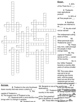 Asian Countries Crossword Puzzles Find a crossword puzzle on asian countries. ... The only South east asian country that was never colonised by a European country. Which country was formerly ...